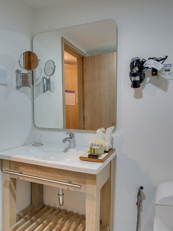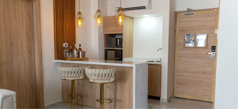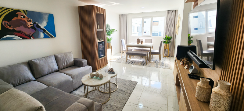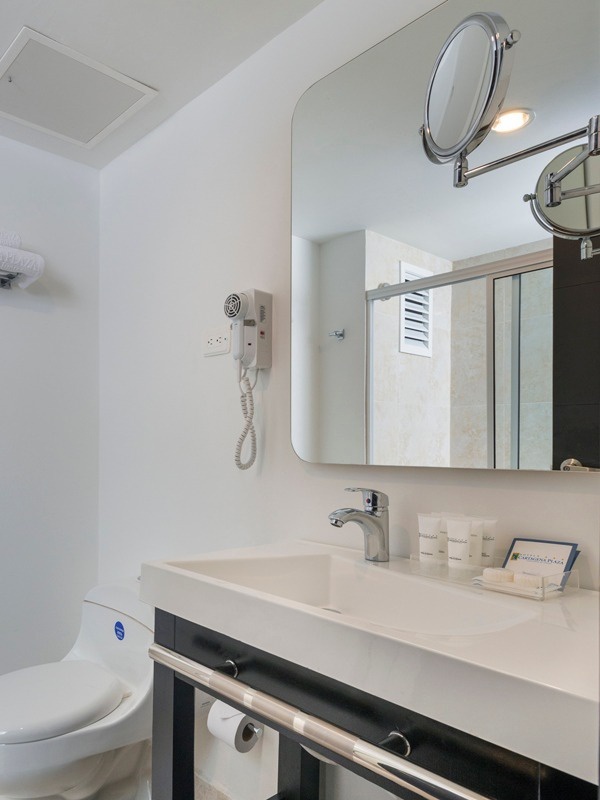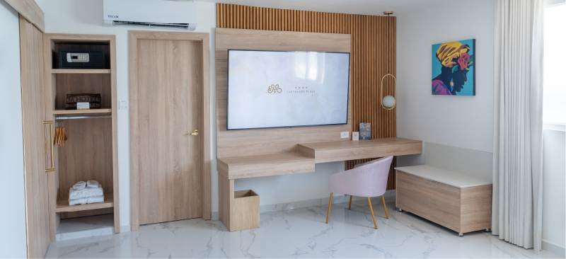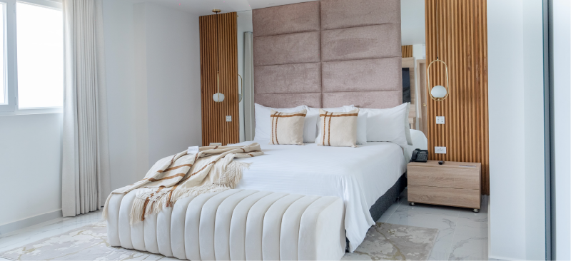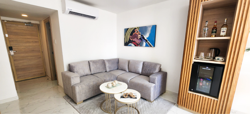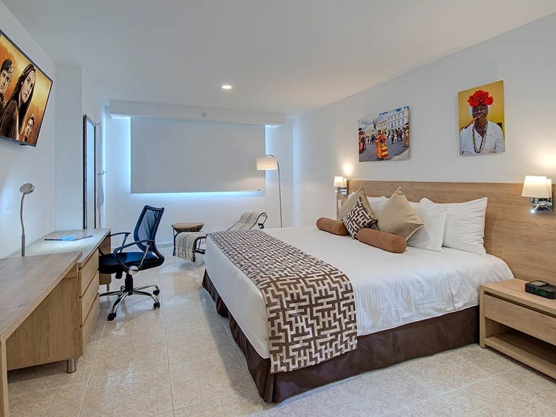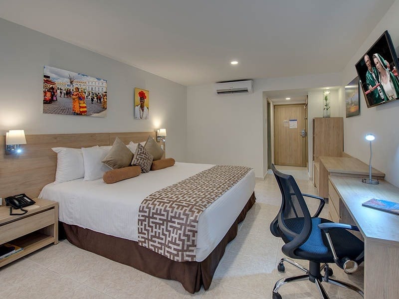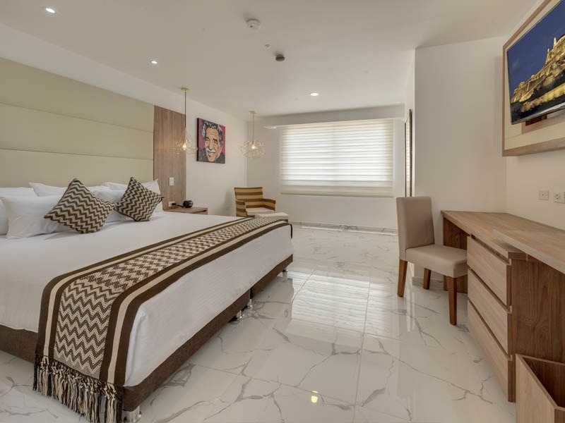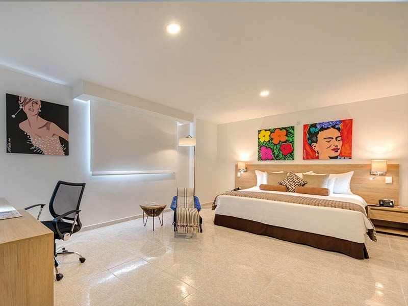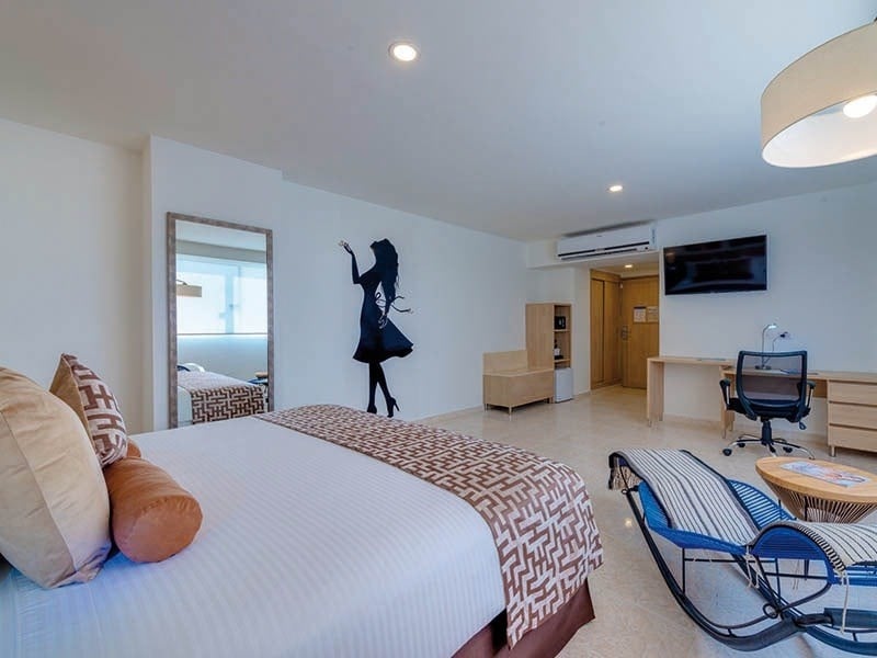 Cómodas y confortables habitaciones de 30M²., muy bien dotadas, donde vivirá una experiencia única de hospitalidad, servicio y confort. Sus grandes espacios la hacen el lugar ideal para relajarse y descansar. Cuenta con dos (2) camas dobles y (1) Sofá cama doble (para tercer adulto y/o persona adicional).